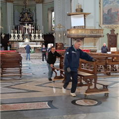 Dopo la sostituzione delle sedie avvenuta nei mesi scorsi, lo scorso venerdì 31 ottobre una parte delle panche della Basilica è stata ritirata per essere sottoposta a un accurato intervento di restauro conservativo, primo passo di un più ampio progetto di valorizzazione e tutela del patrimonio artistico e liturgico di cui dispone la 'chiesa madre' della città di Desio.