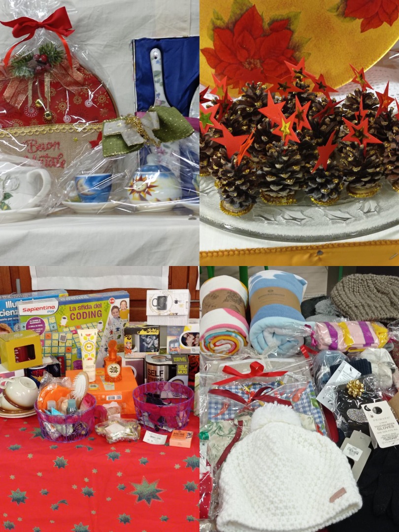 E a proposito di regali, ogni anno, ormai da vari decenni, la nostra parrocchia (SS Pietro e Paolo) organizza un mercatino, oserei dire artigianale. Veniva sempre allestito per i giorni dell’Immacolata, solitamente dal 5 all’8 dicembre. Ricordo che da ragazzina mi affascinava guardare tutti quei tavoli nel salone, con tanti lavori ricamati e cuciti con tanta pazienza e arte e mi chiedevo chi fossero gli artefici di tutto questo. Da adulta poi ho compreso, venivano coinvolte tante nonnine che così si sentivano utili e preziose. Ricordo ancora la signora che portava, già dal mese di settembre, a mia suocera (e visti i tanti lavori esposti, credo a molte nonnine come lei) stoffe, pizzi ed altro per poter ricamare e/o cucire le varie meraviglie esposte.