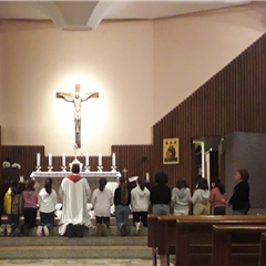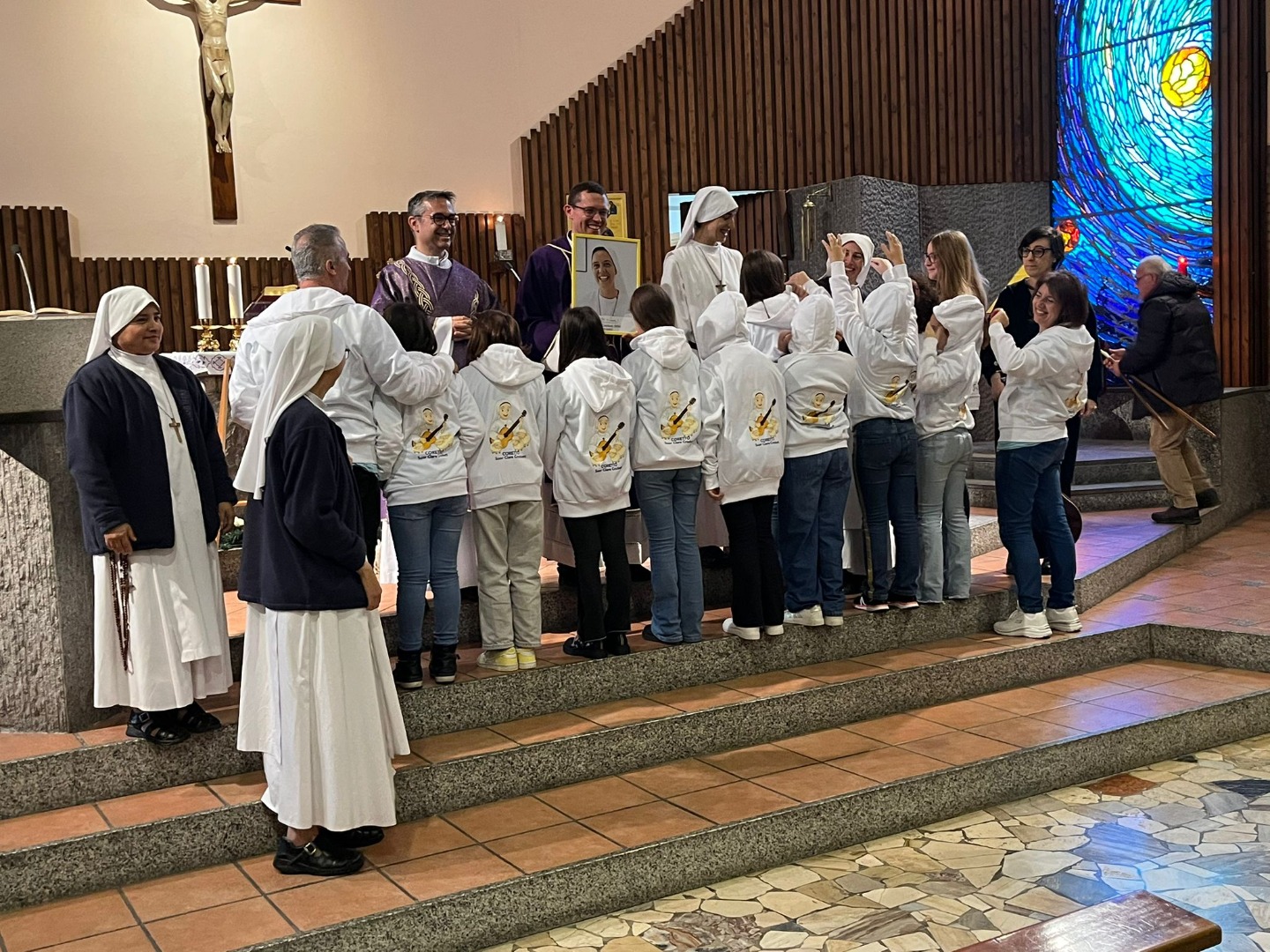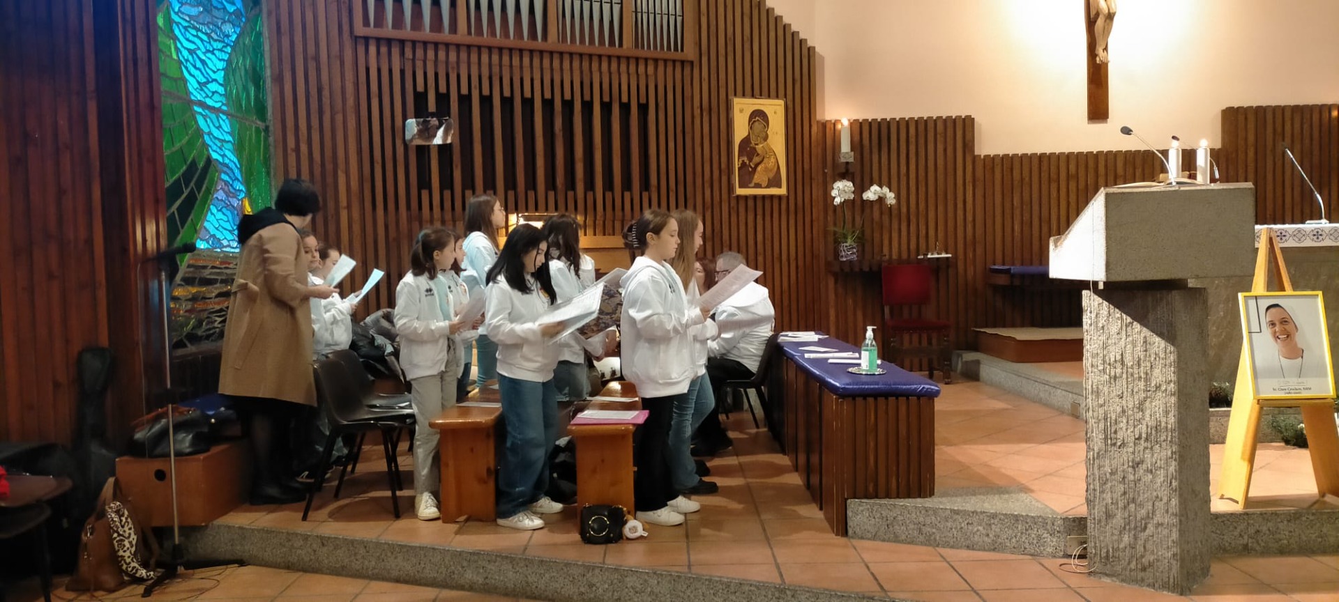 Durante la messa è stato richiamato il carisma del Focolare della Madre e il suo impegno nell’educazione cristiana dei giovani, con particolare attenzione alla testimonianza luminosa di Suor Clare. L e bambine del coro guidate da Massimo e Marianna alle chitarre e dalla giovane e bravissima organista Isabella, hanno cantato con gioia i canti preparati per l’occasione, alcuni anche in spagnolo e in inglese per aiutare nella preghiera le suore di origine straniera presenti alla messa.