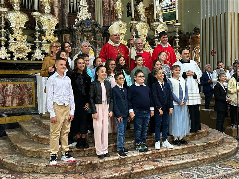 Domenica 12 ottobre, quindici ragazzi della Parrocchia San Giorgio hanno ricevuto il Sacramento della Cresima. In una Basilica gremita, il Vescovo Mons. Luca Raimondi ha guidato una celebrazione intensa e gioiosa, invitando i giovani a custodire l’amicizia con Dio e a vivere la fede con entusiasmo e autenticità.